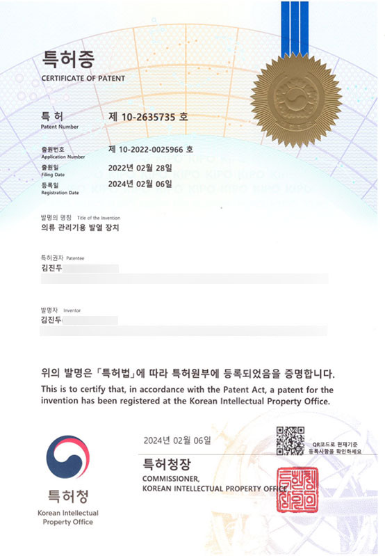 특허증 특허증 (제 10-2635735호) 페이지 정보 작성자 DSW 댓글 0건 조회 62회 작성일 24-07-15 16:15 목록 본문 특허증 (제 10-2635735호) 이전글특허증 (제 10-2635730호) 24.07.15 다음글특허증 (제 10-2635740호) 24.07.15 댓글 0 댓글목록 등록된 댓글이 없습니다.